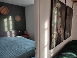 Ce charmant appartement est composé d'une chambre (lit 160*190cm + lit bébé), d'une cuisine ouverte sur le séjour (avec canapé-lit), d'une salle d'eau.